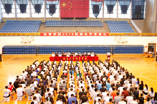 9月4日下午,体育学院2016级新生开学典礼在学院篮球馆举行。体育院党委书记杨军、院长张大超等全体领导、学院各教研室主任、各系主任出席了本次开学典礼。典礼由院党委副书记贾天明主持。