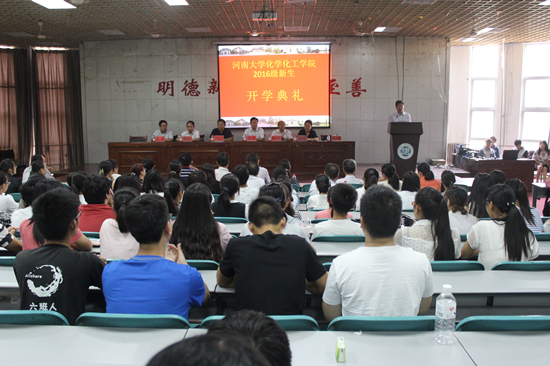 院长牛景杨向2016级新同学的到来表示热烈的欢迎。他向同学们介绍了我校作为省部共建高校在化学方面的发展情况,并详细介绍了化学化工学院的发展历史、近年来所取得的教学科研成果、师资队伍、学科建设、学生在考研、就业等方面的情况。牛景杨向同学们表达了美好的祝愿,希望大家脚踏实地去成就理想、成就人生。努力学习,力争早日成才。