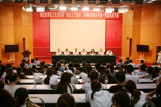 8月16日,由河南省卫生监督局、河南省法学会卫生计生研究会联合举办的“送法上门”巡讲活动开封第一站在我校金明校区开讲,河南省卫生监督局副局长孙磊、传染病监督科科长梁道宝、稽查科科长张树义出席培训会,一附院全体院领导及临床医务人员、相关职能部门500余人参会。