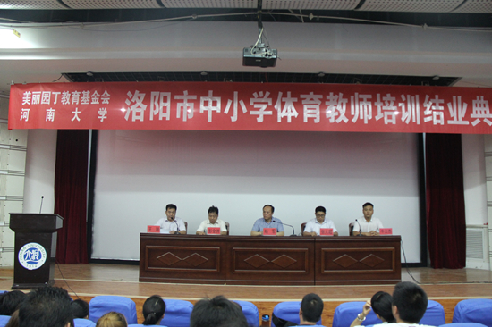7月22日晚,“美丽园丁教育基金会”洛阳市中小学体育教师培训结业典礼在明伦校区科技馆二楼报告厅举行,体育学院、校体育改革与发展研究中心相关负责人出席结业典礼。结业典礼由体育学院社会服务与场馆管理中心主任王刚主持,近180位学员参加典礼。
