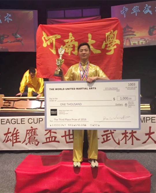 7月15日至17日,我校体育学院武术与民族传统体育专业学生曹皓铭参加了在美国洛杉矶市举行的雄鹰杯“首届世界武林大会”。