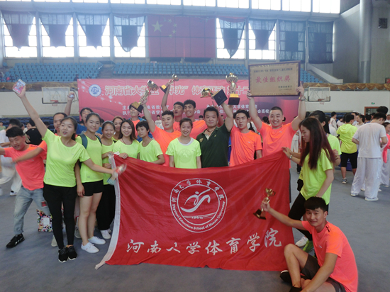 我校体育学院体育教育专业、武术与民族传统体育专业共派出28名学生分别参加乙组和丙组的比赛,在领队彭金洲、教练孙博的带领下,获得团体总分第一名、男子丙组团体总分第一名、女子丙组团体总分第一名、男子乙组团体总分第三名、女子乙组团体总分第三名,各单项共获17金14银9铜的优异成绩,取得了参加历届河南省武术锦标赛最好成绩。同时,河南大学体育学院获得“最佳组织奖”,孙博获得优秀教练员称号。