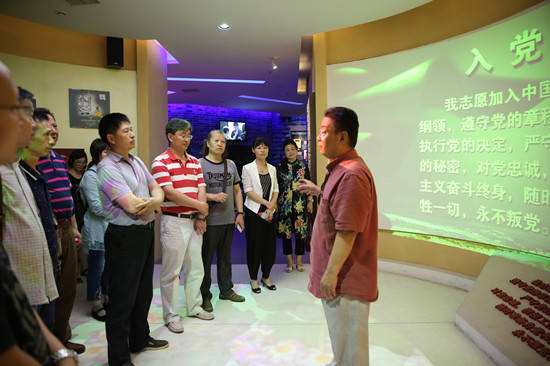 参观结束后,面对鲜红的党旗,艺术学院全体教职工党员举右手再次宣誓。艺术学院党委负责人、院长赵振乾表示,党员领导干部要做表率,争做信念坚定、为人民服务、勤政务实、敢于担当、清真廉洁的好干部;教职工党员要自觉爱党护党为党,带头实践社会主义核心价值观,踊跃投身教育创新实践,不断提高业务能力和教育教学能力,发挥党员先进模范带头作用。