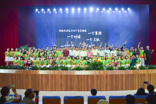 晚会结束后,领导们走上舞台,向参演师生表达了亲切慰问,并愉快地与大家合影留念。