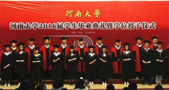 全体师生合唱《河南大学校歌》,毕业典礼在熟悉的旋律中落下帷幕。