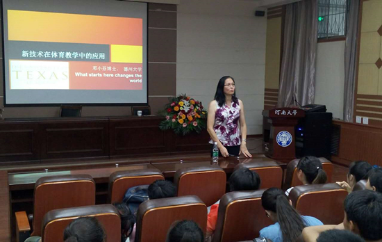 2016年5月20日,美国德克萨斯大学教育学院Keating Xiaofen教授莅临我校体育学院,为师生带来题为“美国体育教师的培养现状”和“高科技在美国体育教学中的应用”两场专题报告,体育学院副院长张大超主持了本次报告。