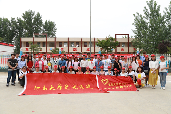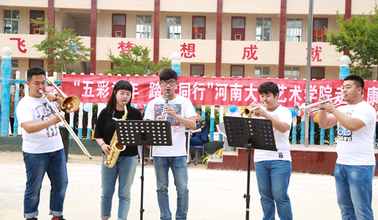 5月19日,艺术学院50余名青年志愿者在老师的带领下乘车来到开封市祥符区杜良乡大康寨小学举行“五彩童年,踏歌同行”慰问活动,不仅为孩子们捐建了“哆啦A梦”图书室,还一展所长让艺术走进校园,为康寨全校师生送上了一场别开生面的文艺演出。
