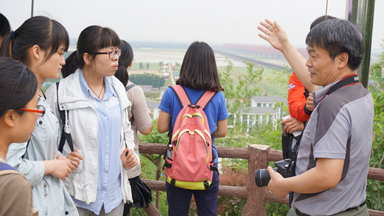 彭剑锋在黄河郑州邙山段对学生进行《黄河自然地理》课程现场教学