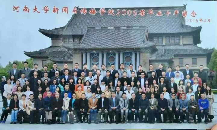 见面会结束后,师生们前往大礼堂前合影留念,毕业十年后,大家重聚的笑脸都定格在了那一刻