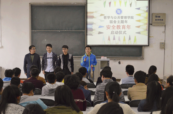 据悉,哲学与公共管理学院准备用四年时间开展主题不同的“宿舍主题年”系列活动。自去年3月“宿舍主题年·文明礼仪年”启动以来,受到了全校师生的广泛关注。今年的“宿舍主题年·安全教育年”主题活动,是在学校开展的“安全教育进宿舍”大背景下展开的,活动将开展“宿舍安全知识竞赛”、“大学生安全教育讲座”、“美食文化节”、“安全教育微视频大赛”等系列活动,学院还将延续去年的以“日行一善”为主题的宿舍记事本活动。