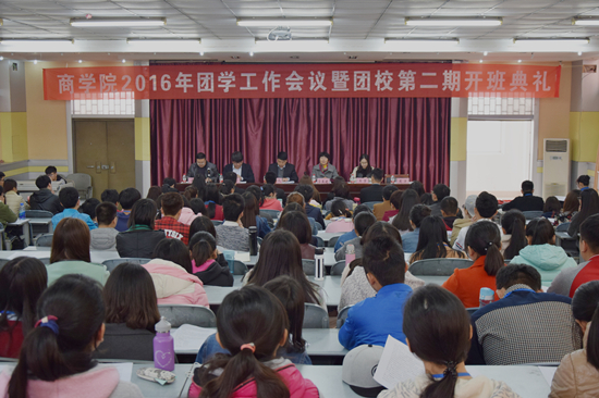 3月17日,商学院2016年团学工作会议暨团校第二期开学典礼在学院二楼报告厅举行。校团委、商学院有关负责人出席典礼,商学院第二期团校全体学员参加典礼。典礼由院党委办公室主任吴涛主持。