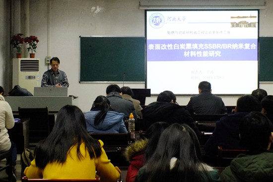 丁涛教授首先作了题为“绿色轮胎用橡胶纳米复合材料的制备与性能研究”的学术报告,详细介绍了该“973”项目的背景和研究进展,并总结了实验室2015年度的工作。接着张普玉、张予东、房晓敏、徐括喜、徐浩等13位教师分别结合自己的研究课题作了年度工作汇报,在研究思路的形成,科学实验的开展,科研论文的撰写等方面进行了汇报,并在研究问题上与应邀参会的教授及师生们进行了深入探讨,在交流之中领会不足,总结经验,取长补短。