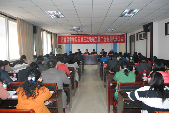 2016年1月3日下午,教育科学学院五届三次教职工暨工会会员代表大会在院四楼会议室召开。校工会主席朱恒宽出席大会。全体院领导、教师正式代表、列席代表出席大会。