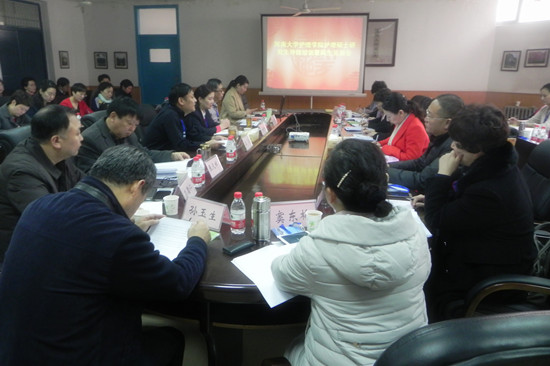 2016年1月3日上午,河南大学护理学院护理专业硕士研究生导师培训暨师生见面会在护理学院二楼会议室举行。河南省人民医院、河南省肿瘤医院、开封市中心医院、河南大学淮河医院、河南大学第一附院医院五家临床实践基地的护理部主任、全体职业导师,以及护理学院的全体领导班子成员和全体学业导师参加了会议。