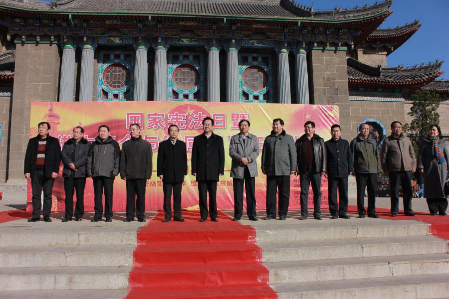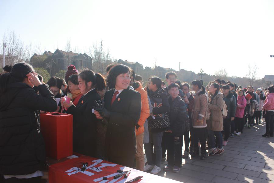 12月4日上午,由开封市顺河区司法局、我校保卫处主办,法学院、历史文化学院、民生学院承办的宪法日普法宣传活动暨“借古鉴今与法同行”征文活动启动仪式在我校大礼堂前举行。开封市委常委、政法委书记詹玉锋,市人大常委会副主任曹法英等领导莅临现场指导了普法宣传情况,并参与“法治顺河”蓝图拼接活动及“普法治天下,弘宪法精神”签名活动。