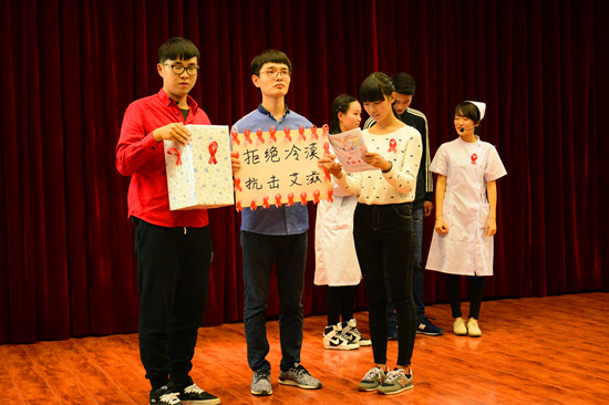演出前,任丽君还与同学们谈了艾滋病给家庭带来的悲剧,给社会造成的创伤,倡议大家共同向“零”艾滋迈进,作一个防艾战士。