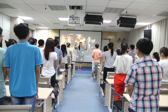 9月2日下午,铿锵有力而又催人奋进的歌声从医学院六楼录播室传出。医学院2013级临床专业5班学生在这里举行了以“勿忘国耻 振兴中华”为主题的纪念抗日战争胜利70周年班会活动。同学们通过“唱一首红色歌曲、读一本红色书籍、看一部红色电影、拍一段红色视频、写一篇红色文章”这“五个一”活动缅怀抗战英烈,传承抗战精神。