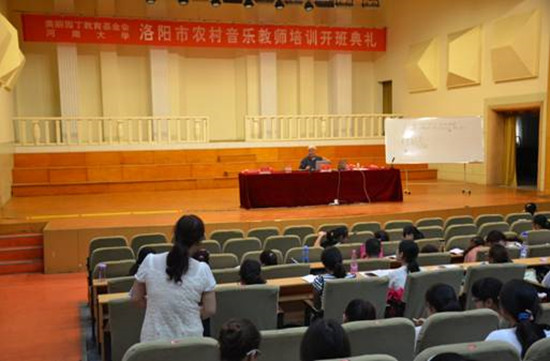 沈洽教授以《音乐人类学视角下的“多元•本位”音乐教育观》为主题,为正在我校参加2015“美丽园丁”工程培训的180名洛阳市农村地区的中小学音乐教师授课。沈洽教授的悉心讲授,不仅向学员们传达了音乐教育以人为本的理念,并通过讲解人同世界平等包容的关系、人同社会人际忠、信、礼、义、廉、耻的关系突出了多元本位。他提出,音乐教师要帮助学生通过对世界音乐、乡乐、传统音乐的学习,建立自觉的民族身份认同意识和人本身的价值意识;要帮助学生通过对礼乐的制度性行为的学习,培养学生的礼乐精神,要让学生了解和懂得什么样的音乐对培养自身素养最有帮助。