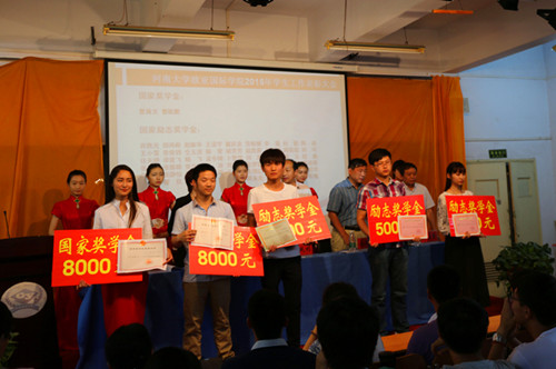 2015年5月21日下午,欧亚国际学院在学院二楼报告厅召开2015年学生工作表彰大会。欧亚国际学院领导班子全体成员出席,200多名师生代表与会,欧亚国际学院副院长王敬学主持大会。