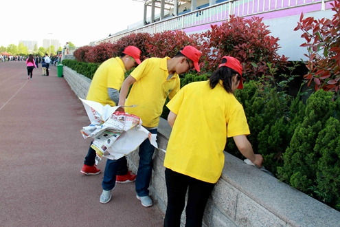 在运动会举办的三天中,环境与规划学院团委合理安排自愿报名的同学们,对于场地内观众席及各个走道的垃圾进行及时清理,观众席的随手垃圾进行回收,并统一进行分工处理。同学佩戴小红帽,身着统一服装,认真进行着赛后环境清扫工作。可爱的小红帽在操场上划出一道道靓丽的风景,他们不放过任何一处场地,不仅仔细清理着操场内的草坪,还有入口处的花坛,为河大校园奉献无微不至的关怀。