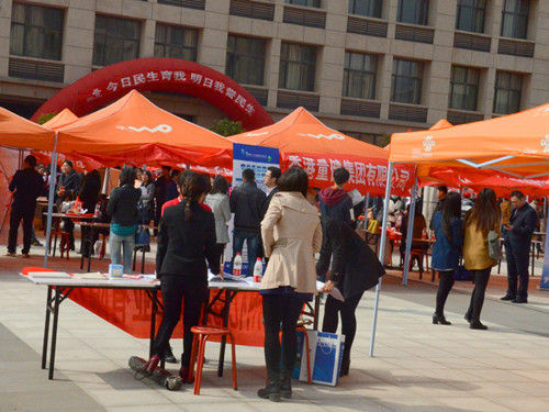 春暖花开,百花齐放。2015年4月12日上午,民生学院新校区文化广场彩旗飘扬,热闹非凡,来自全国各行各业的300余家企事业单位来这里招聘英才。
