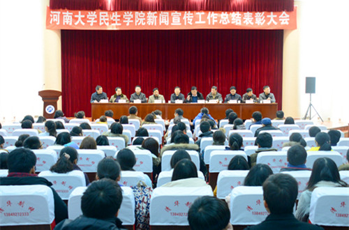 2015年1月6日下午,民生学院 2014年度新闻宣传工作总结表彰大会在学院艺术楼一楼报告厅举行。院领导魏剑、刘道衔、高如民、王建国出席,学院相关部门和各分院负责同志与会。会议由院党政办公室主任李国民主持。