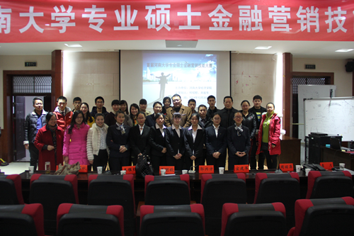 12月30日下午,首届河南大学专业硕士金融营销技能大赛在经济学院二楼阶梯教室举行。学院有关负责人,经济学院2014级金融、保险专业硕士学生参与这次活动。