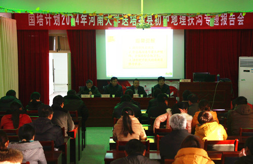 12月6日—7日,我校“国培计划2014年河南大学送培到县初中地理扶沟专题报告会”在周口市扶沟县实验小学举行。“送培到县”项目组专家、教授将来自扶沟县的五十余位初级中学地理教师进行为期两天的交流与学习。