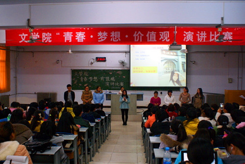 追寻核心价值,成就梦想青春。12月4日下午,文学院 “青春•梦想•价值观”演讲比赛决赛在明伦校区十号楼128教室举行。文学院相关领导老师出席本次比赛。比赛评委由文学院王中安、魏清源、孙书蝶、许兆真、张丽珍、郑慧霞等5位老师担任。