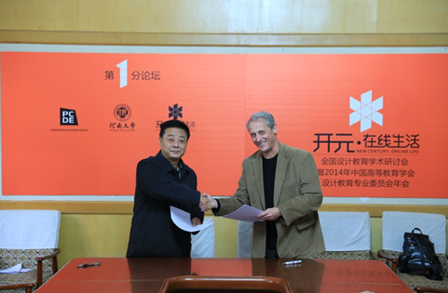 11月5日上午,赵振乾与皮特•怀南特代表双方学院签署了《河南大学艺术学院与美国乔治•梅森大学艺术学院的合作协议》。