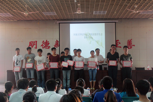 随后,大会对荣获省级表彰的先进集体和个人。获得河南大学“校园之星”、学院“优秀部长”、“部门之星”、“学院之星”等荣誉称号的同学、在春季运动会中表现优异的团队和个人,以及荣获河南大学先进团支部、最佳团日活动团支部,优秀团员、优秀团干,河南大学2014年“挑战杯”中荣获一二三等奖及优秀奖的团队等给予表彰。领导老师依次为获奖团队和个人颁发荣誉证书,合影留念。