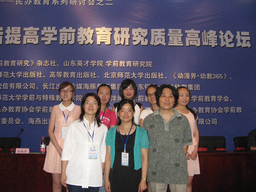2014年6月14日至15日,由《学前教育研究》杂志社主办,山东英才学院学前教育研究院承办的首届“中美对话提高学前教育研究质量高峰论坛”在山东济南召开。来自美国幼儿教育协会主席Gera Jacobs博士、学前教育研究主编 Adam Winsler博士,以及我国台湾地区和大陆地区400余名学前教育专家、学者、幼教实践工作者共聚一堂,就中美学前教育现实和发展前景展开了交流和讨论。我校教育科学学院学前教育系主任岳亚平教授带领5名学前教育专业研究生参加了此次会议。
