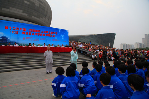 6月13日上午,第十二届中国•邯郸国际太极拳运动大会在河北邯郸广府古城拉开大幕。国家体育总局副局长肖天、河北省有关领导,以及12位太极拳名家出席开幕式。来自海内外18个国家和地区的近两千名太极拳习练者进行了大会各项活动。我校体育部主任洪浩作为孙式太极拳名家应邀参加了大会。