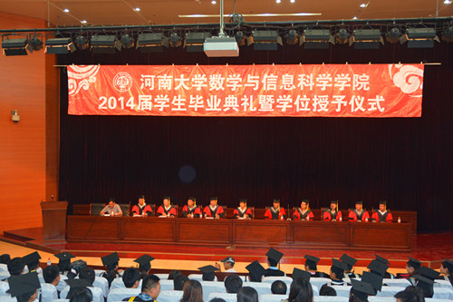 “多年师生情,今夕离别很,满堂祝福语,只赠学子行”。6月4日下午,数学与信息科学学院2014届本科生毕业典礼暨学位授予仪式在金明校区图书馆一楼报告厅举行。学院领导、学位评定委员会委员、部分教师代表及2014届334名本科毕业生参加了典礼。毕业典礼由院党委副书记陈河山主持。