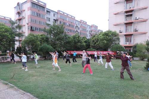 近期,每逢双休日早上或下午,我校周边的几个居民社区就会出现一批志愿者,免费为社区居民提供太极拳教学与指导服务,这是我校体育部组织的太极拳社区辅导活动的场景。