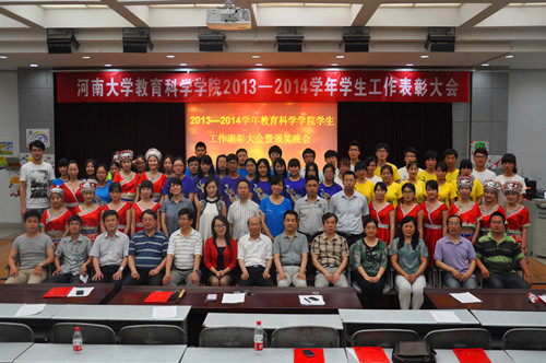 2014年5月29日晚,教育科学学院一楼报告厅气氛热烈,2013—2014学年学生工作表彰大会暨颁奖晚会在此举行。教育科学学院领导及部分教职工出席晚会。