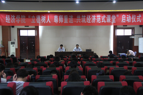 为认真贯彻落实《河南大学2014年申报全国文明单位实施方案》的内容与精神,打造“一院一品”的精神文明建设格局,5月16日下午,经济学院在二楼报告厅举办“立德树人 尊师重道 共筑经济范式课堂”启动仪式。仪式由经济学院党委副书记王桂主持,教师代表和学生代表参加本次活动。