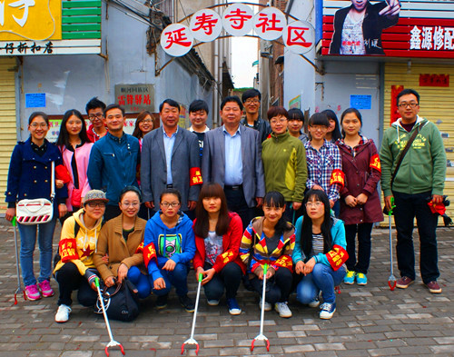 大家按时抵达铁塔一街延寿寺社区后,受到了社区领导的热情接待。随即,大家分成若干小组,各自领取劳动工具,投入到文明创卫的督导活动中。在活动的明伦街等街区,同学们认真仔细地打扫街边垃圾、清理乱贴的小广告、制止不文明行为等活动。本次活动受到了延寿寺社区居民的一致好评。