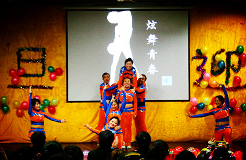 晚会由“人生,若只如初见”、“长大,我就成了你”、“看,今朝风流人物”和“致,将失去的青春”四幕组成,节目涵盖歌曲,舞蹈,小品,乐器合奏等,形式新颖,内容丰富。其中,舞蹈《爱的华尔兹》舞姿优美,浪漫温馨,将观众带入曼妙的童话世界;小品《甄嬛传》则让现场爆笑连连,诙谐的语言,搞笑的肢体动作,无不引来阵阵掌声。随后,由王路娟等教师带来的《炫舞青春》健美操表演嗨翻全场,他们身着橘色服装、脚迈青春步伐、面带幸福微笑,精彩的表演向全场师生传递着正能量。此外,饱含激情的诗歌朗诵《歌唱祖国》,动感十足的表演B-box,优雅动听的小提琴演奏为晚会锦上添花。“今年化工院的晚会高端大气上档次”、“华尔兹好有爱啊!”“节目好棒啊,我站着也没有白来”。现场滚动的微博墙满载着场内外观众的感想和祝福。
