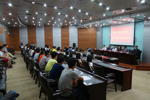 6月17日下午,国际教育学院在金明校区行政楼151会议室举行欢送会,为即将赴德国安哈尔特应用技术大学学习的2011级中德项目的学生送行。学院领导班子、德国安哈尔特应用技术大学代表及学院德语专业教师代表出席欢送会。欢送会由院党委副书记李从国主持。