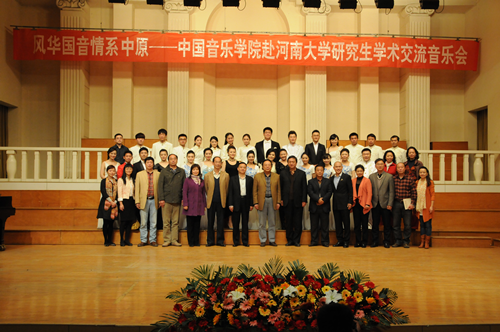 2013年10月25日晚,“风华国音 情系中原——中国音乐学院硕、博研究生学术交流音乐会”在我校艺术学院音乐厅成功举行。本场音乐会由中国音乐学院研究生处与河南大学艺术学院联合主办,旨在促进艺术学院与名校牵手、加强交流与合作,推进研究生教育的改革,探索提高培养质量的新途径。
