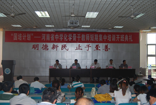 2013年9月17日上午,2013年河南省《国培计划》化学学科骨干教师培训开班典礼在我校化学化工学院学术报告厅举行。河南大学远程与继续教育学院、化学化工学院相关领导以及担任此次培训教学任务的教师和培训的学员参加了典礼,开班典礼由化学化工学院院长助理许英主持。