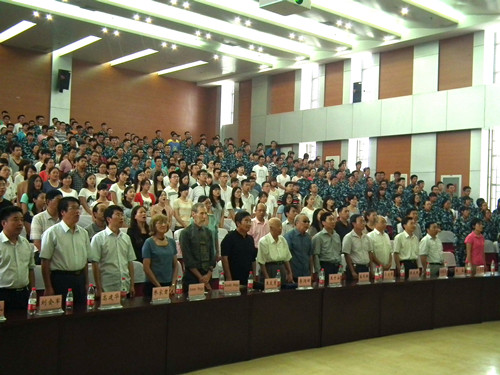 9月11日下午,环境与规划学院2013级新生开学典礼在金明校区图书馆一楼报告厅举行。原校领导李润田、王才安、王发曾,我校海外讲座教授Ronald Briggs、Jeanne Briggs,院长秦耀辰及其他相关领导、老师和500多名本、硕、博新生与会。典礼由学院党委书记闫峻主持。