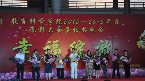6月16日晚,教育科学学院2012-2013年度表彰大会暨颁奖晚会在教育科学学院隆重举行。我校党委副书记王凌、副校长刘志军,相关职能部门领导应邀莅临现场。教育科学学院领导班子全体成员及部分教职工观看了此次晚会。