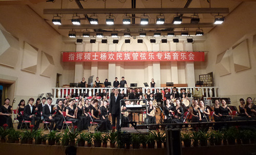 2013年6月3日晚,杨欢硕士毕业民族管弦乐专场音乐会在艺术学院音乐厅举行。常务副校长赵国祥,校党委副书记、艺术学院党委书记王凌及艺术学院各级领导等出席了音乐会。