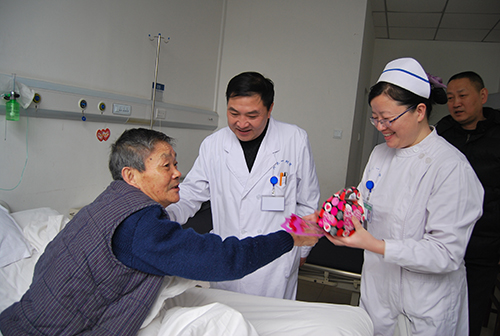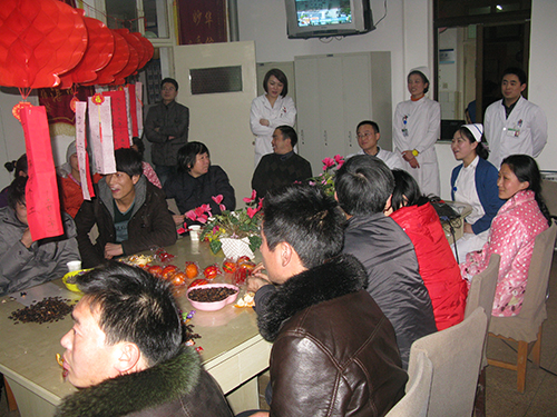 在儿科病房,医护人员组织患儿和家属举行了新春联谊会,并为每一患儿送上了精美的礼品和节日的祝福;胸心血管肿瘤外科,精心装扮了病房,为在院患者和家属举办“迎新春 猜灯谜 过新年”活动,并准备了年味十足的点心,大家一起开开心心看春晚;呼吸内科为每一位住院患者送上了康乃馨和新年红包,内装糖和瓜子;中肾科全科人员为患肾衰竭的24岁的年轻妈妈捐款献爱心;妇产科、神经外科、心血管内科一病区、中肾科为患者和家属送上了热气腾腾的饺子……