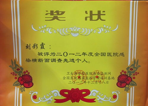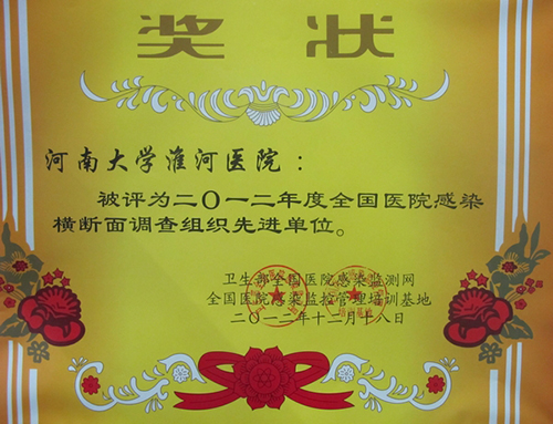 近日,淮河医院在全国医院感染横断面调查活动中,被卫生部全国医院感染监测中心、卫生部全国医院感染监控管理培训基地评为2012年度全国医院感染横断面调查先进单位, 这是该院连续两年获此殊荣。感染管理科刘彩霞获该项工作先进个人并受表彰。