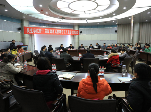 2012年12月6日下午,民生学院在金明校区行政楼一楼会议厅举行新一届新闻通讯员聘任仪式暨业务培训会。民生学院党政领导,学校新闻中心相关负责人及有关老师,民生学院各部室负责人和45名新闻通讯员与会。民生学院党委副书记王建国主持聘任仪式。