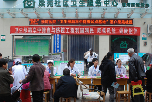 10月29日,是世界脑卒中日,这天上午淮河医院组织专家组来到梁苑社区开展脑卒中宣传义诊活动,并从这天起淮河医院将对常住户籍人口5万人的梁苑社区内40岁以上人群,通过问卷调查、实验室检查(如血常规、尿常规、血生化等)及颈动脉超声、心电图、超声心动图检查等方式,进行脑卒中高危人群筛查和干预工作。