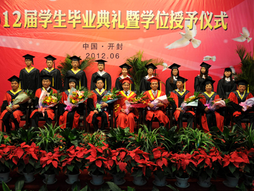 在雄浑激昂的河南大学校歌声中,毕业生典礼暨学位授予仪式圆满落幕。据悉,民生学院2012届普通本科毕业生共有2116人。截至6月8日,2012届毕业生中共有近400名考取硕士研究生,63名学生被评为省级优秀毕业生,421名学生被评为校级优秀毕业生。
